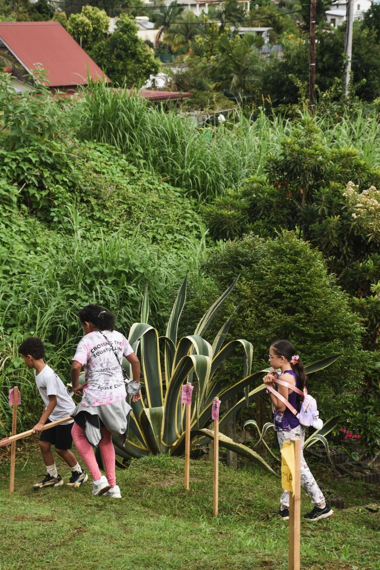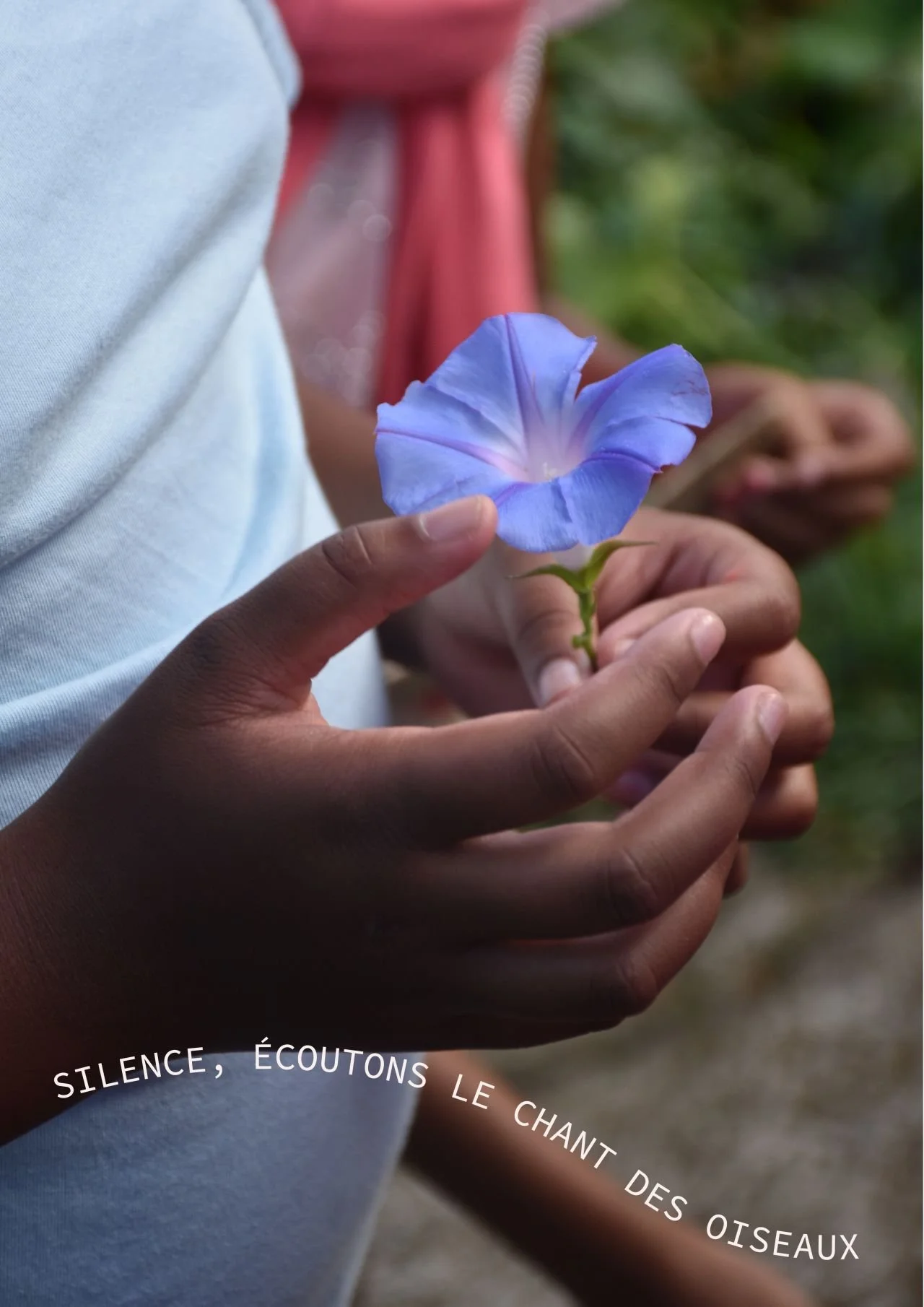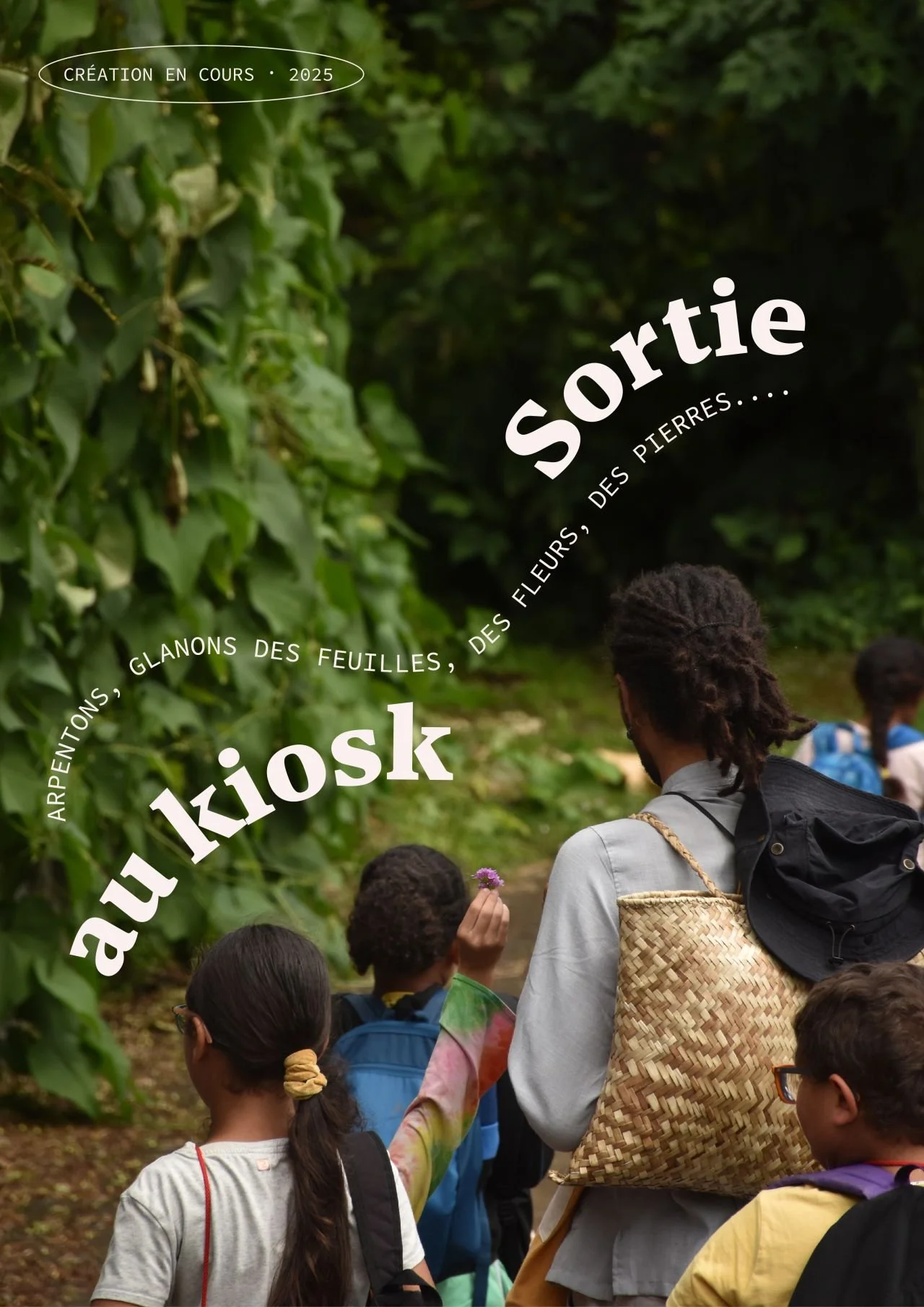 Ce projet a été co-construit avec les 24 élèves de la classe de CM1, avec laquelle nous avons imaginé un kiosk du futur. Nous avons arpenté ensemble le trajet pour produire une cartographie sensible du chemin rejoignant l'école et le kiosk. Le FuturoKiosk est un lieu d'apprentissage et de partage de savoir-faire local (plantes, recettes, festivités...) pour les marmays et tout domoun! Fé viv a li !